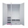 Thiết kế bên trong tủ khoa học với khoang lớn treo đồ dài và những khoang nhỏ để đồ gấp gọn. Ngoài ra, ngăn kéo với ổ khóa sẽ giúp bé cất giữ những món đồ cá nhân cho riêng mình.